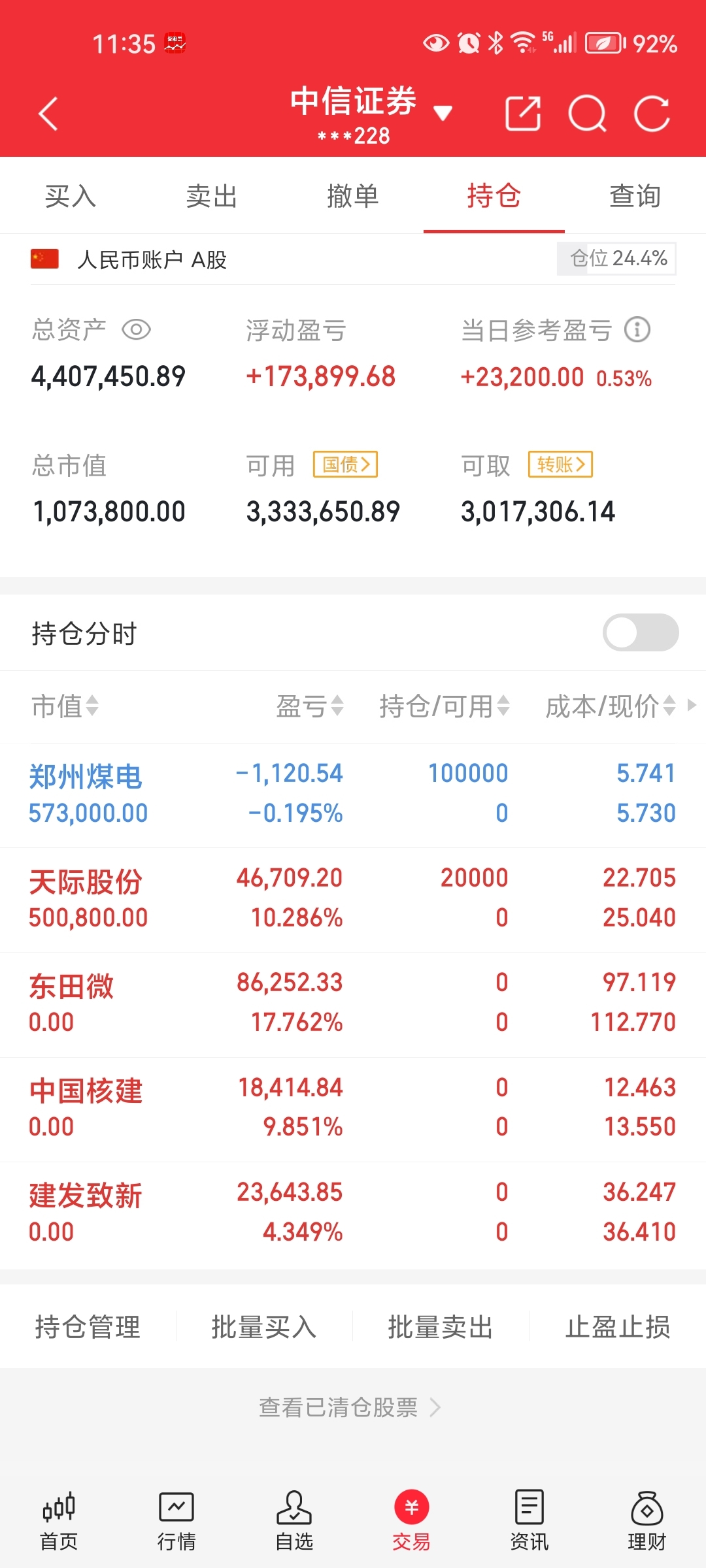 今日买进:继续持有:今日卖出:中国核建东田微建发致新己落袋为安特别声明:这只是我
