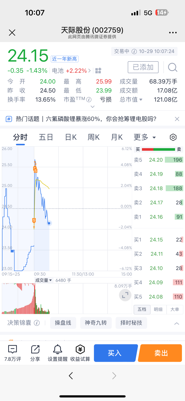 $天际股份(SZ002759)$ 今天才是真正的筑吊顶,再见,周五再来了