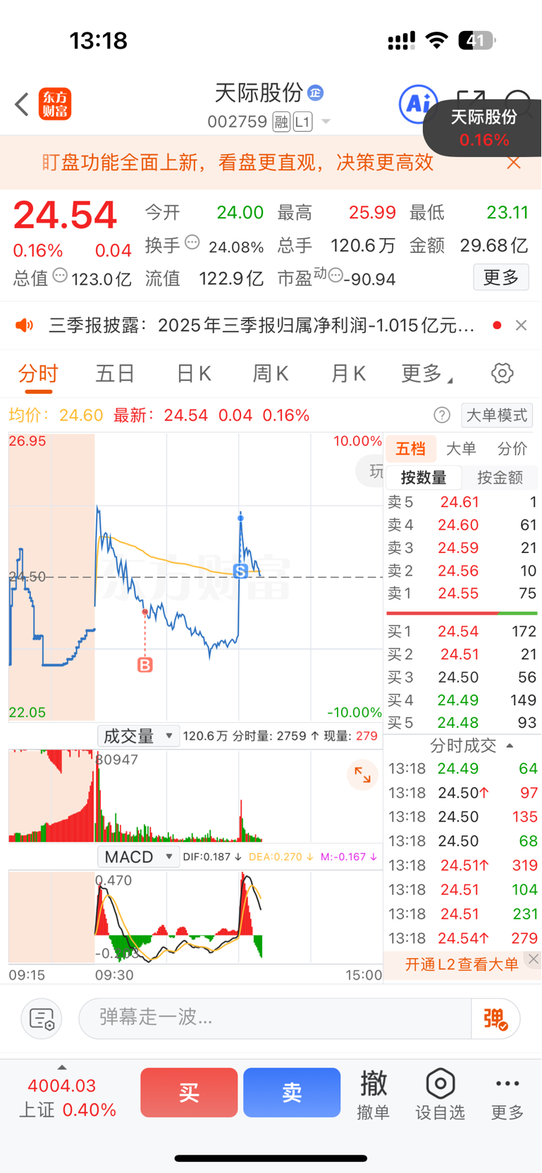 $天际股份(SZ002759)$ 感谢主力放我一马 感谢感谢