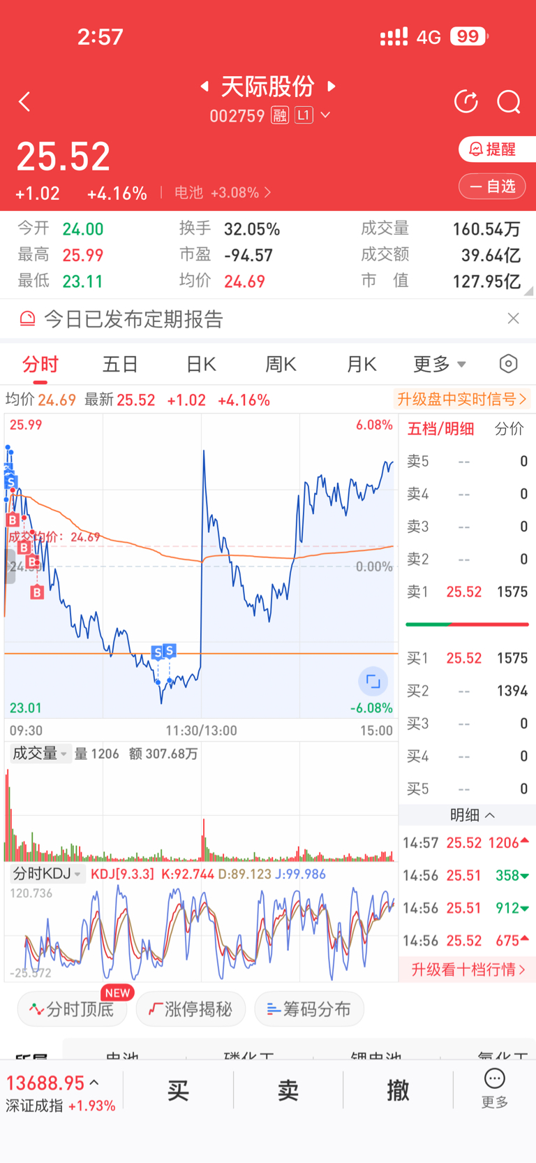 $天际股份(SZ002759)$ 今天最高点25.98卖一部分
