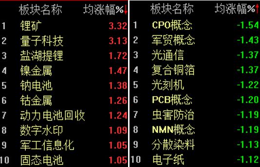 板块方面,锂电池产业链爆发,天际股份、石大胜华、鹏辉能源等多股涨停。量子科技概念再度走强,神州信息涨停,纬德信息、国盾量子、禾信仪器、科大国创等跟涨。
