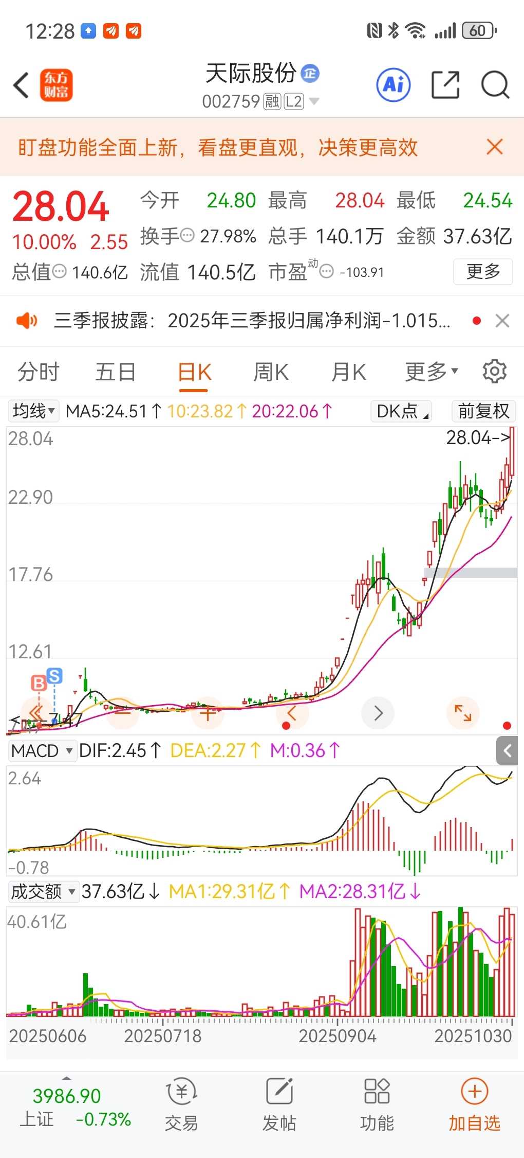 $天际股份(SZ002759)$  别涨了,你这样显得我狠呆