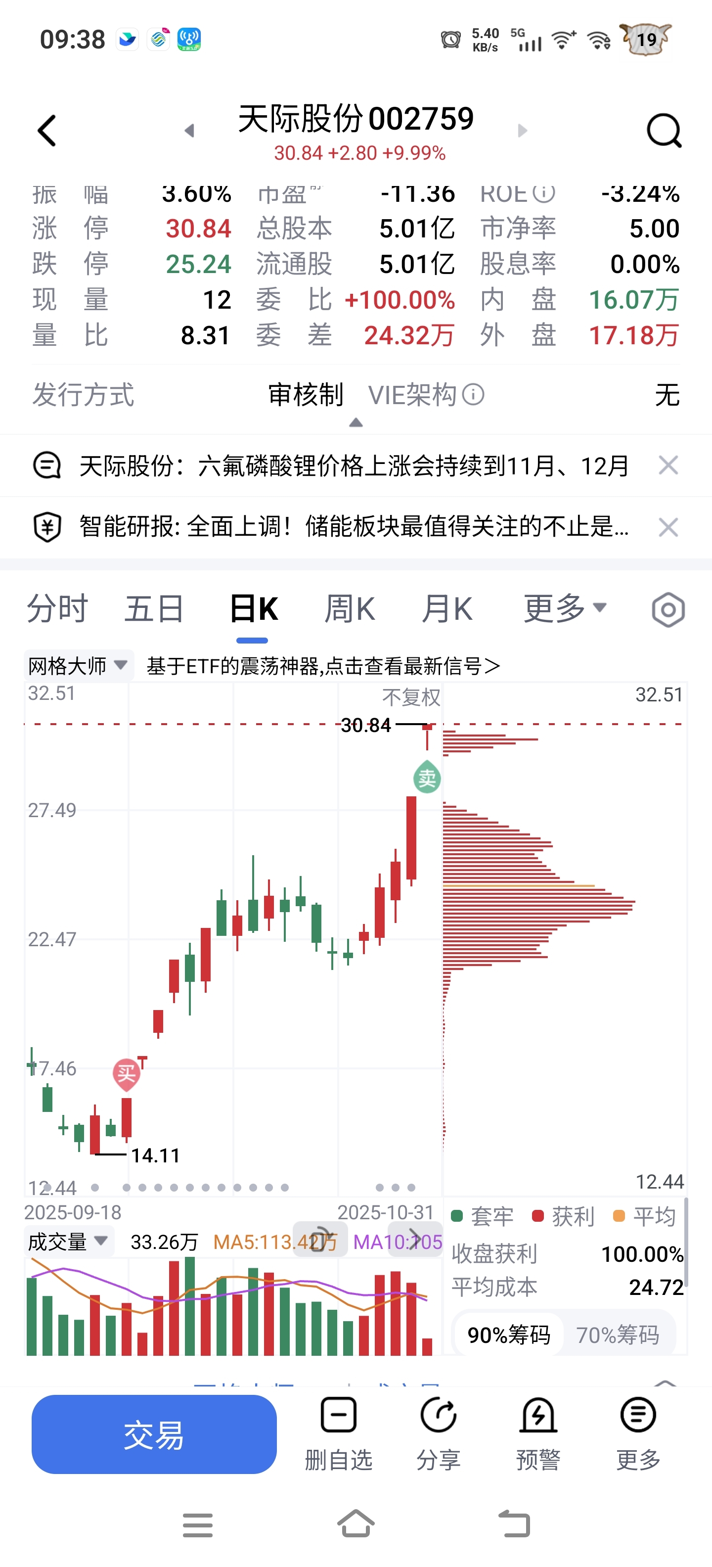 $天际股份(SZ002759)$ 落袋为安啦