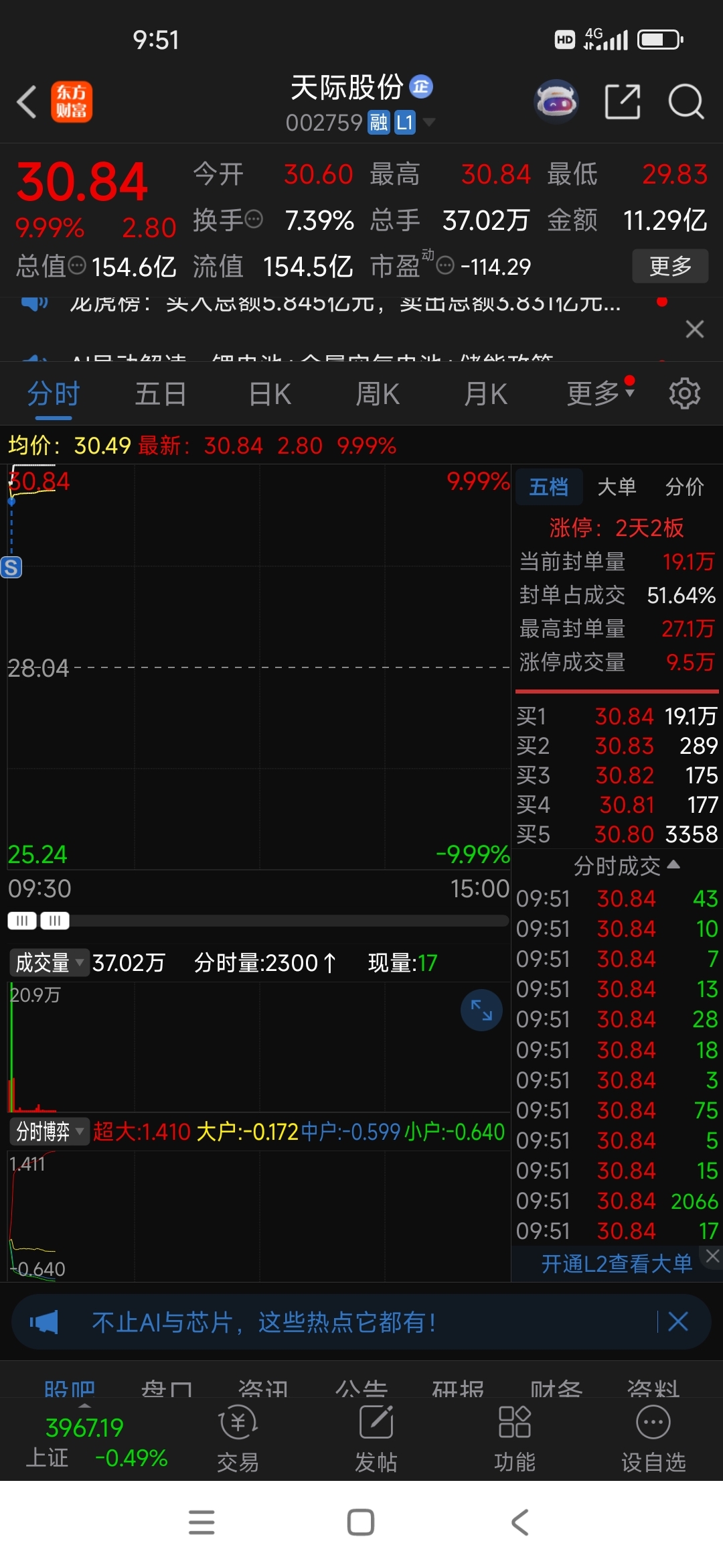 $天际股份(SZ002759)$ 沉不住气,真想抽自己