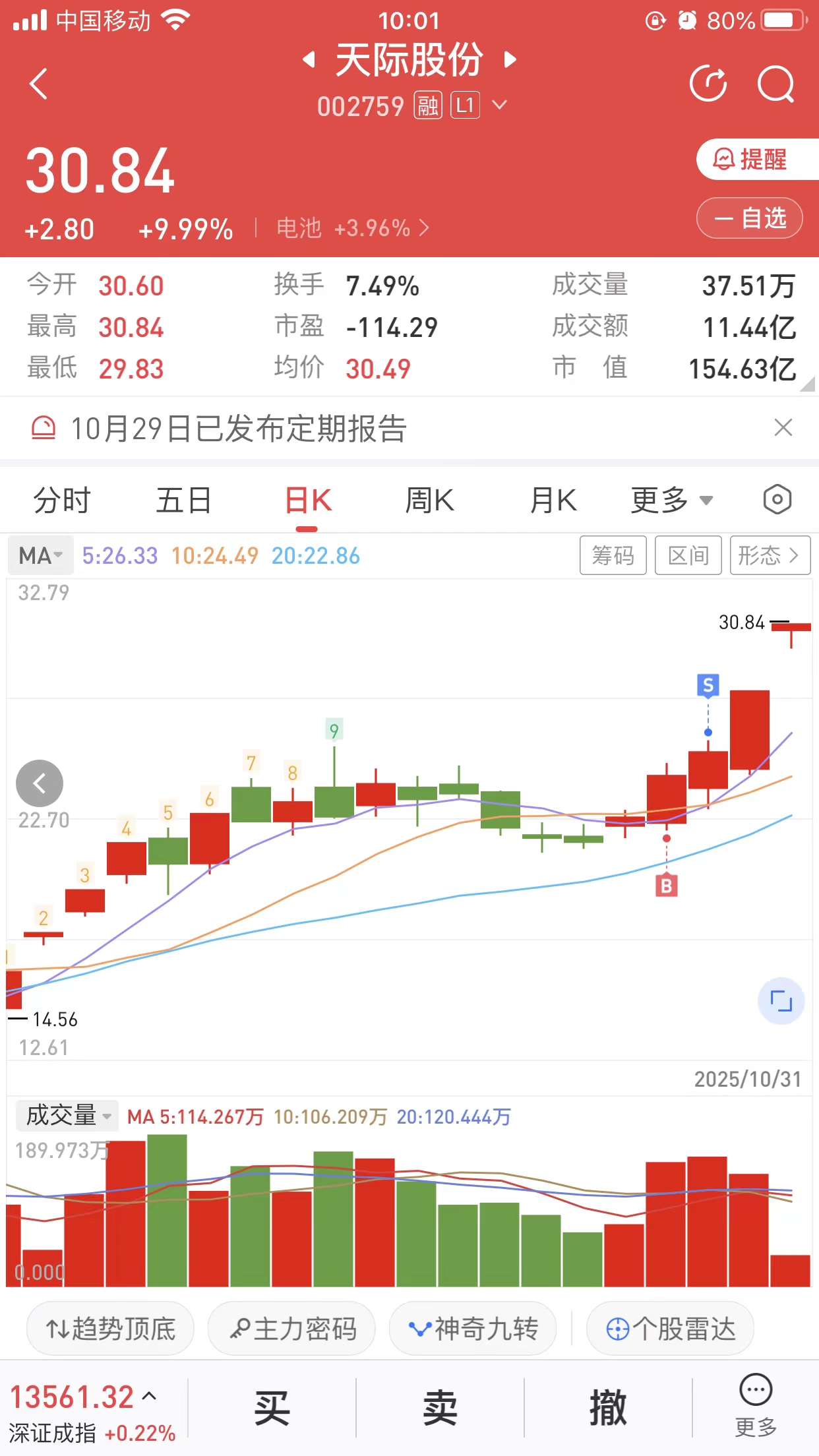 $天际股份(SZ002759)$ 前天卖掉了,你们说气人不