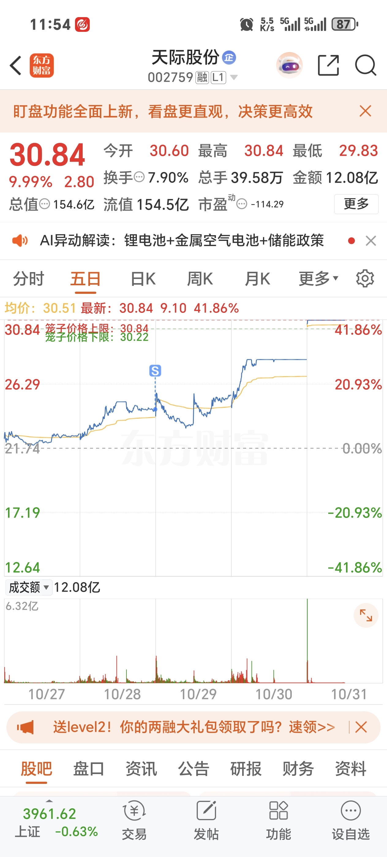 $天际股份(SZ002759)$  回本赚了一点点就跑了,可惜