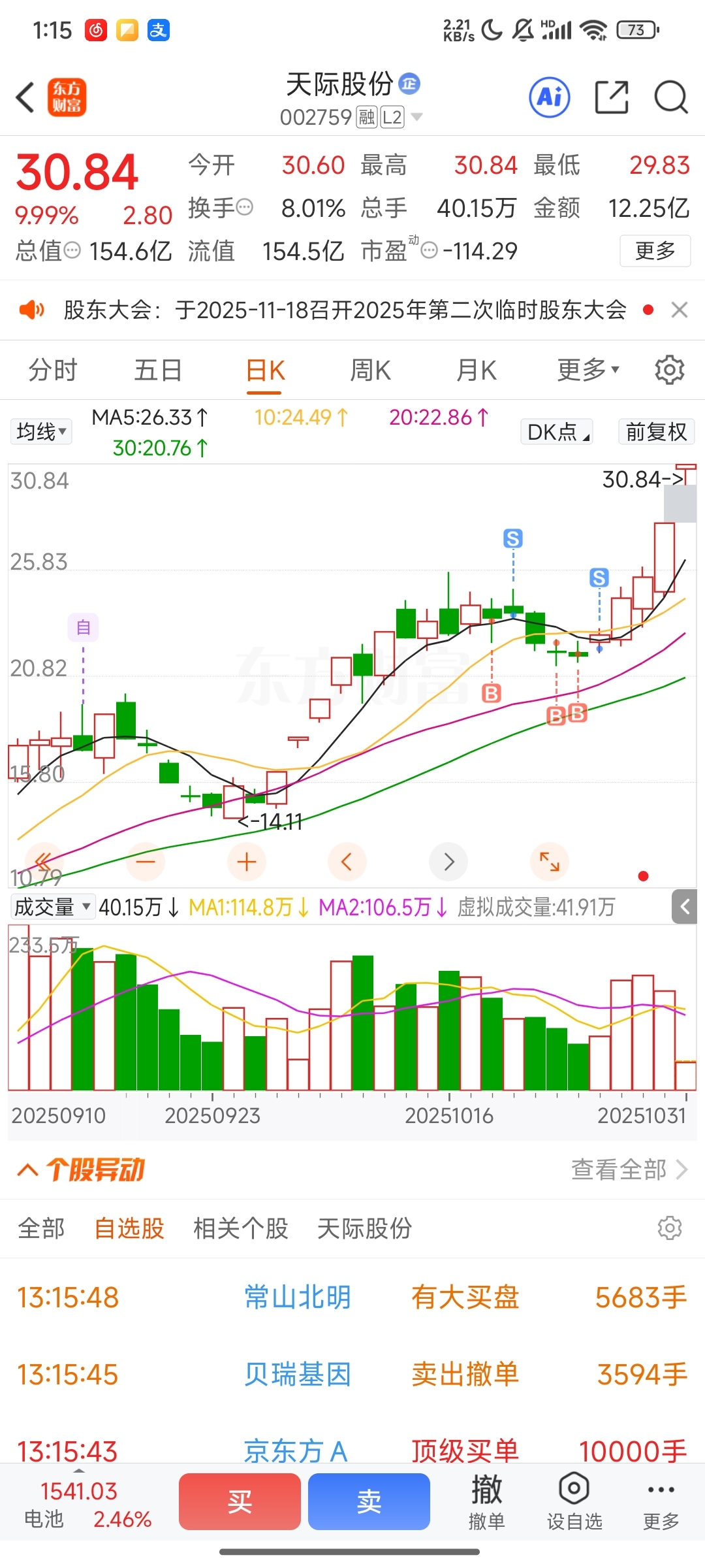 $天际股份(SZ002759)$ 满仓啊30个点没了,结果去了华建吃了个跌停,这个月白干了