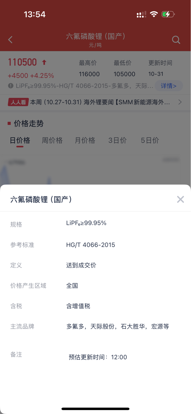 $天际股份(SZ002759)$ 六氟磷酸锂今天又涨了