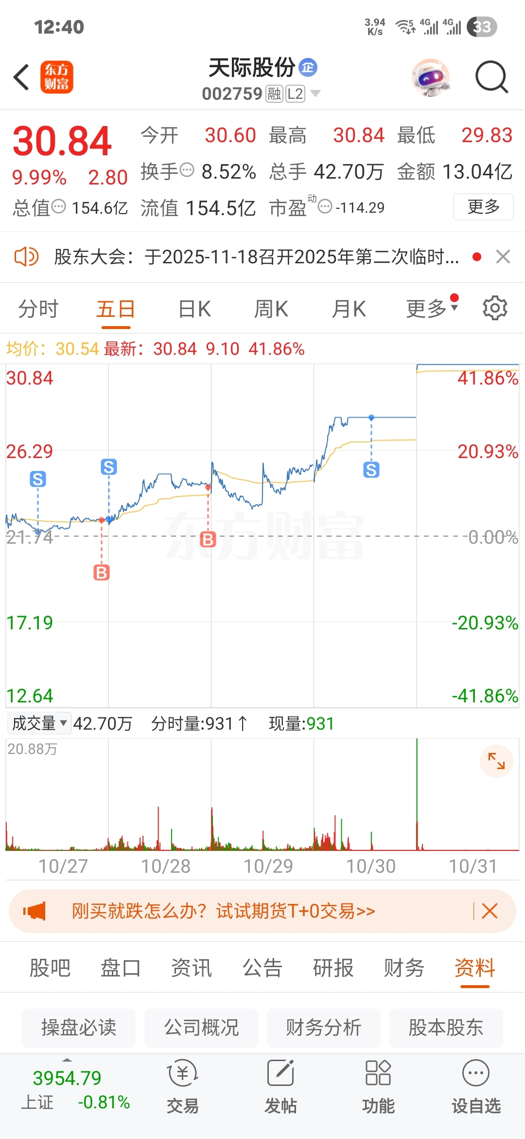 $天际股份(SZ002759)$ 成功卖飞,然后周四尾盘进了安泰周五-5又进了补仓食了个跌停拉了起来还好还好