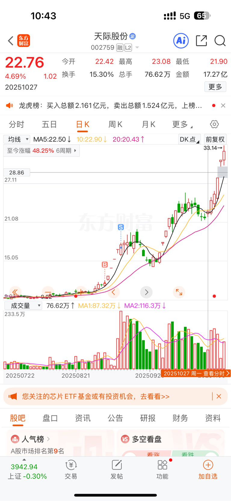 $天际股份(SZ002759)$ 这玩意这么能涨,拿不住