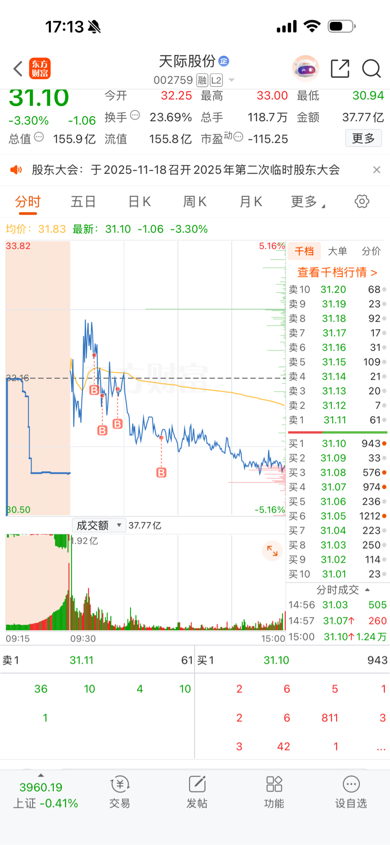 $天际股份(SZ002759)$ 昨天的低点都没破 怕什么