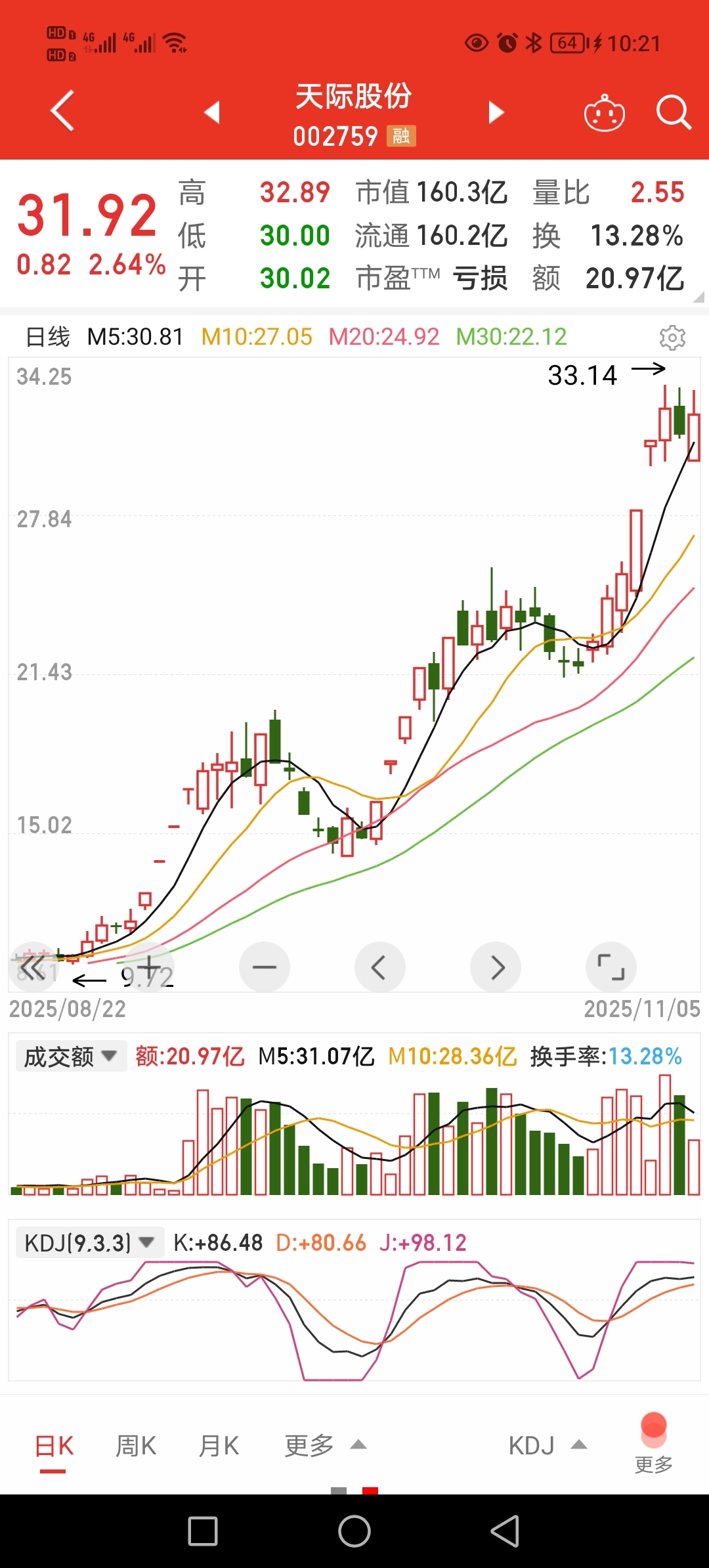 $天际股份(SZ002759)$ 上不去了,指标显示必跌