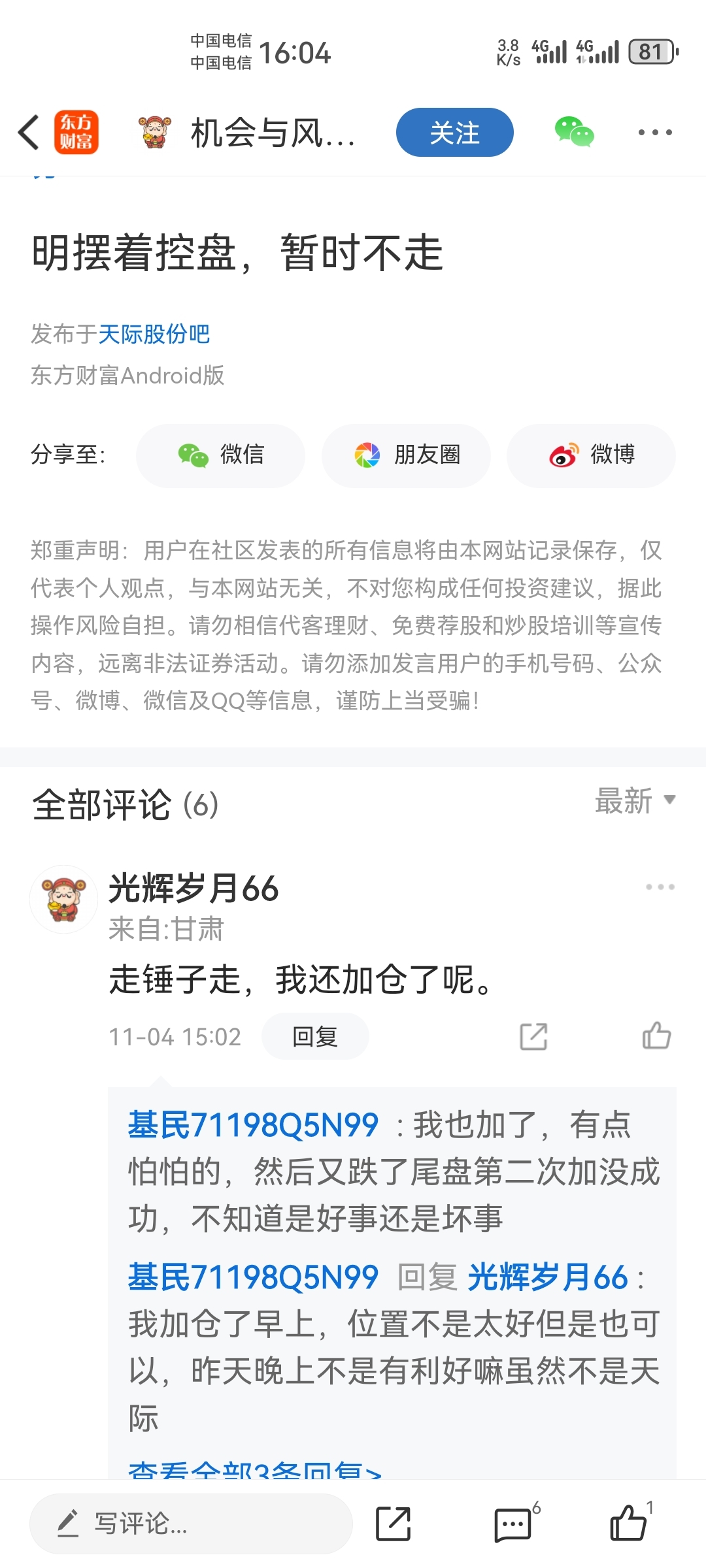 温馨提示: 1.根据《证券法》规定,禁止编造、传播虚假信息或者误导性信息,扰乱证券市场;2.用户在本社区发表的所有资料、言论等仅代表个人观点,与本网站立场无关,不对您构成任何投资建议。用户应基于自己的独立判断,自行决定证券投资并承担相应风险。《东方财富社区管理规定》