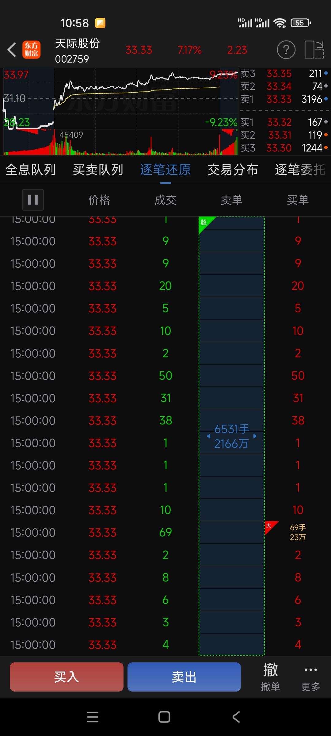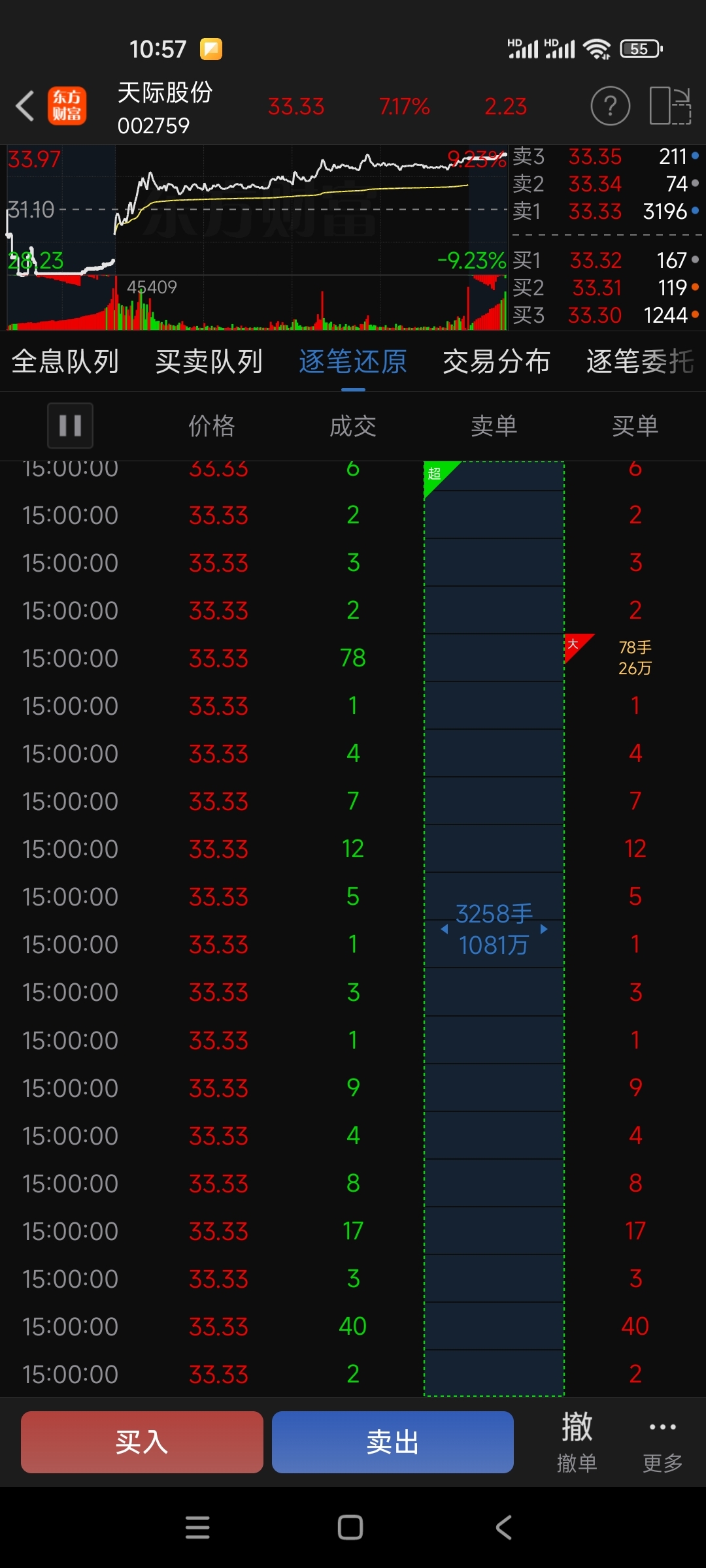 $天际股份(SZ002759)$ M明天高开就有五分钟跑时间,电池板块尾盘都是卖出