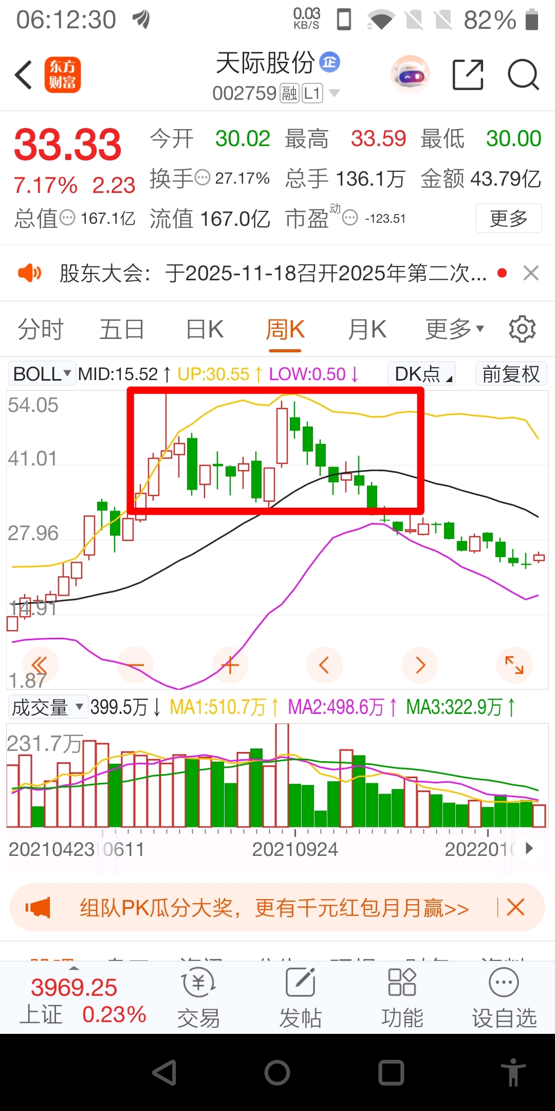 $天际股份(SZ002759)$ 天际??已经冲到了前期头部平台了,需要百分之二十的调整。那里,套牢盘多多