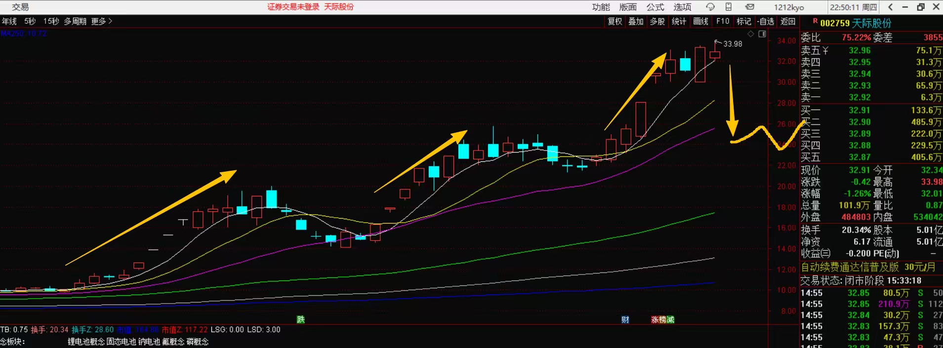 六氟概念的领头羊,甚至在大盘大跌的时候,它也是横盘调整次日马上反包,技术上短期依然强势,但是日线3段式的上涨已经积累的很多获利盘,当前已不建议介入,等待周线回调5日线后看企稳后重新考虑介入。