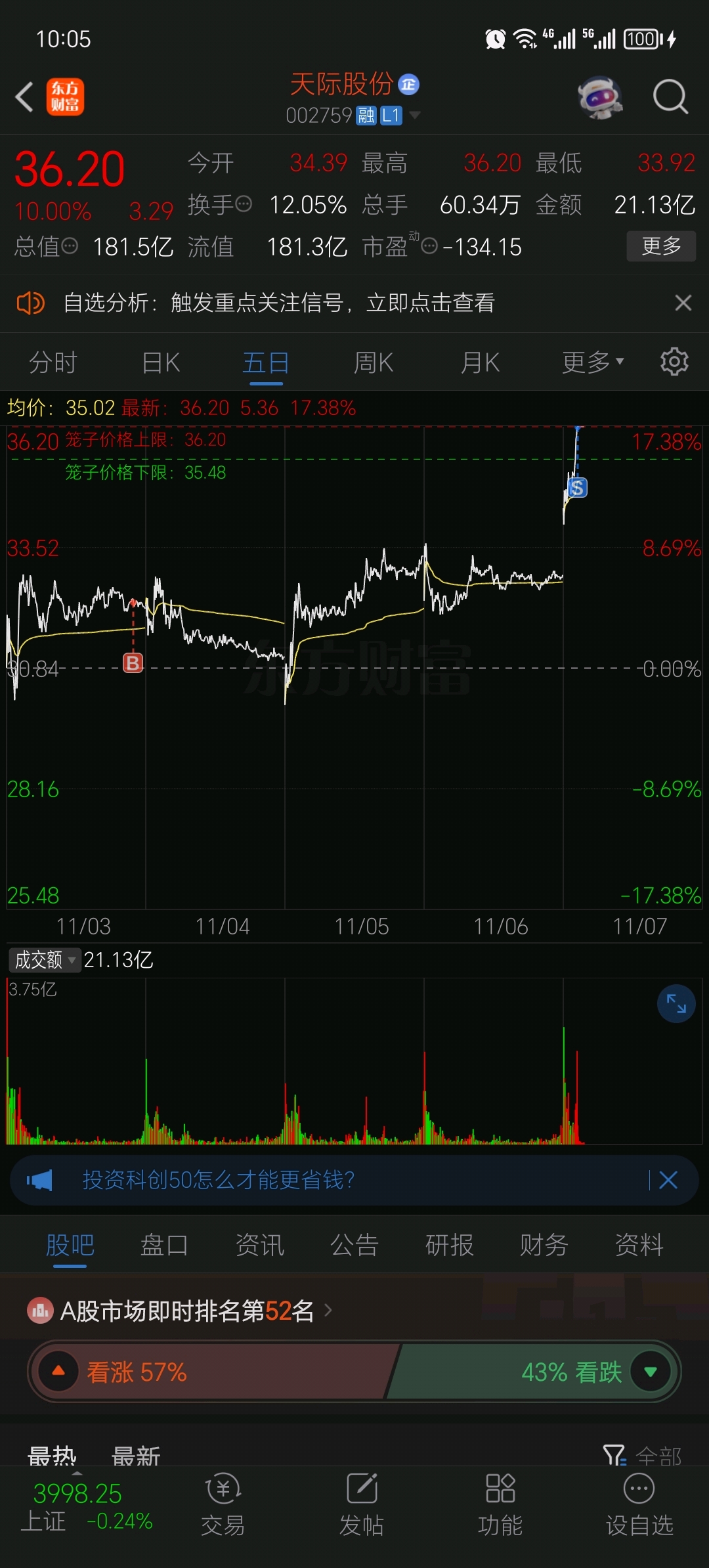 $天际股份(SZ002759)$ 富贵险中求,走了