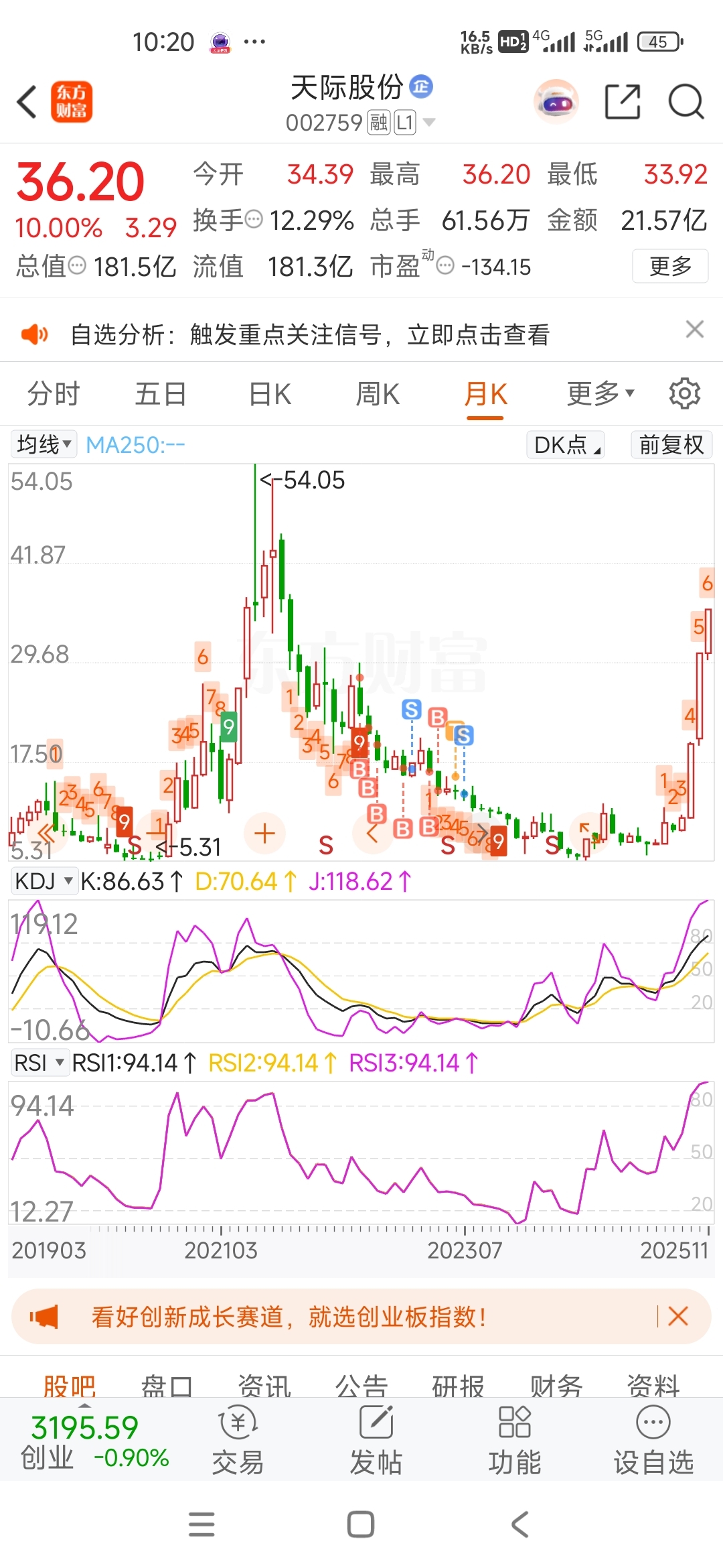 $天际股份(SZ002759)$ 没坚持住,错过错过