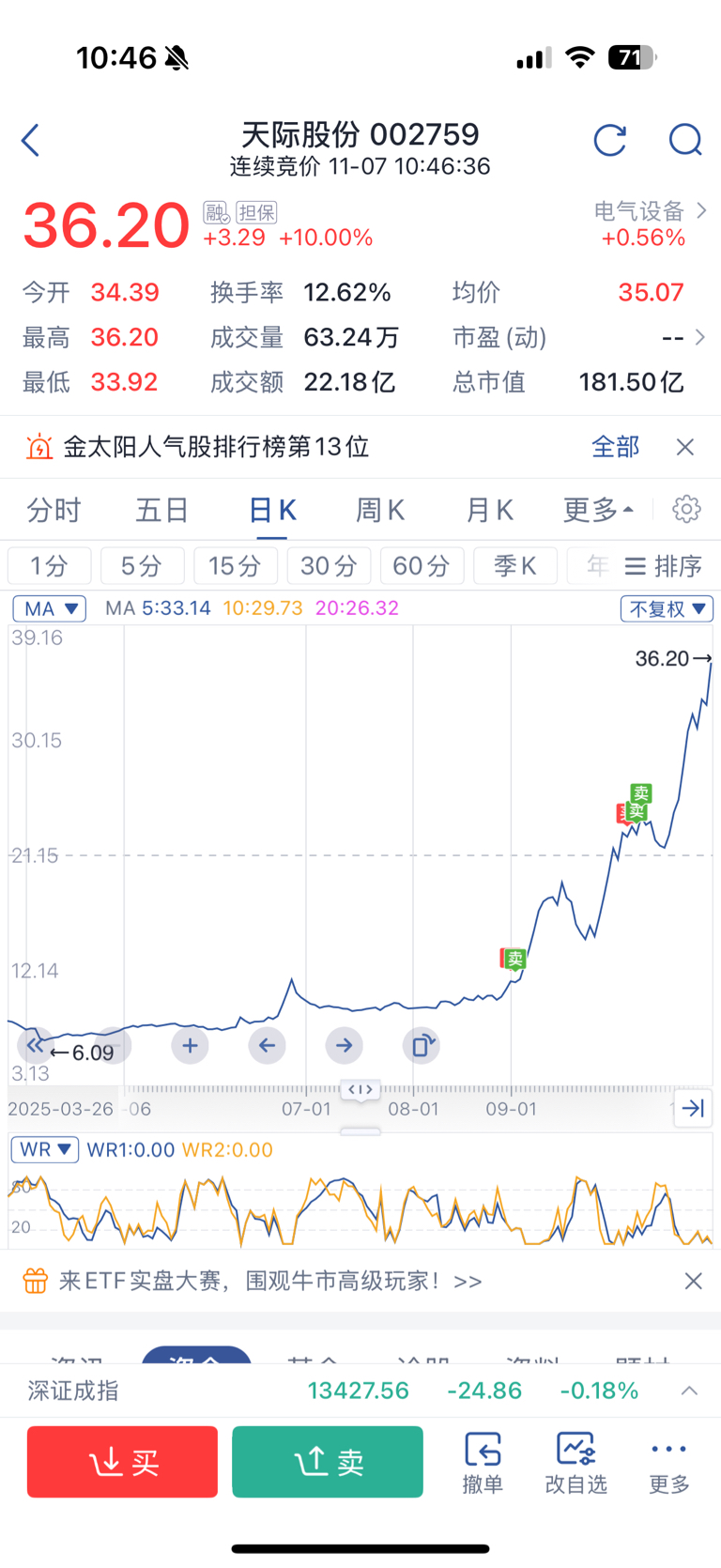 $天际股份(SZ002759)$ 哎呀差点给我过上好日子