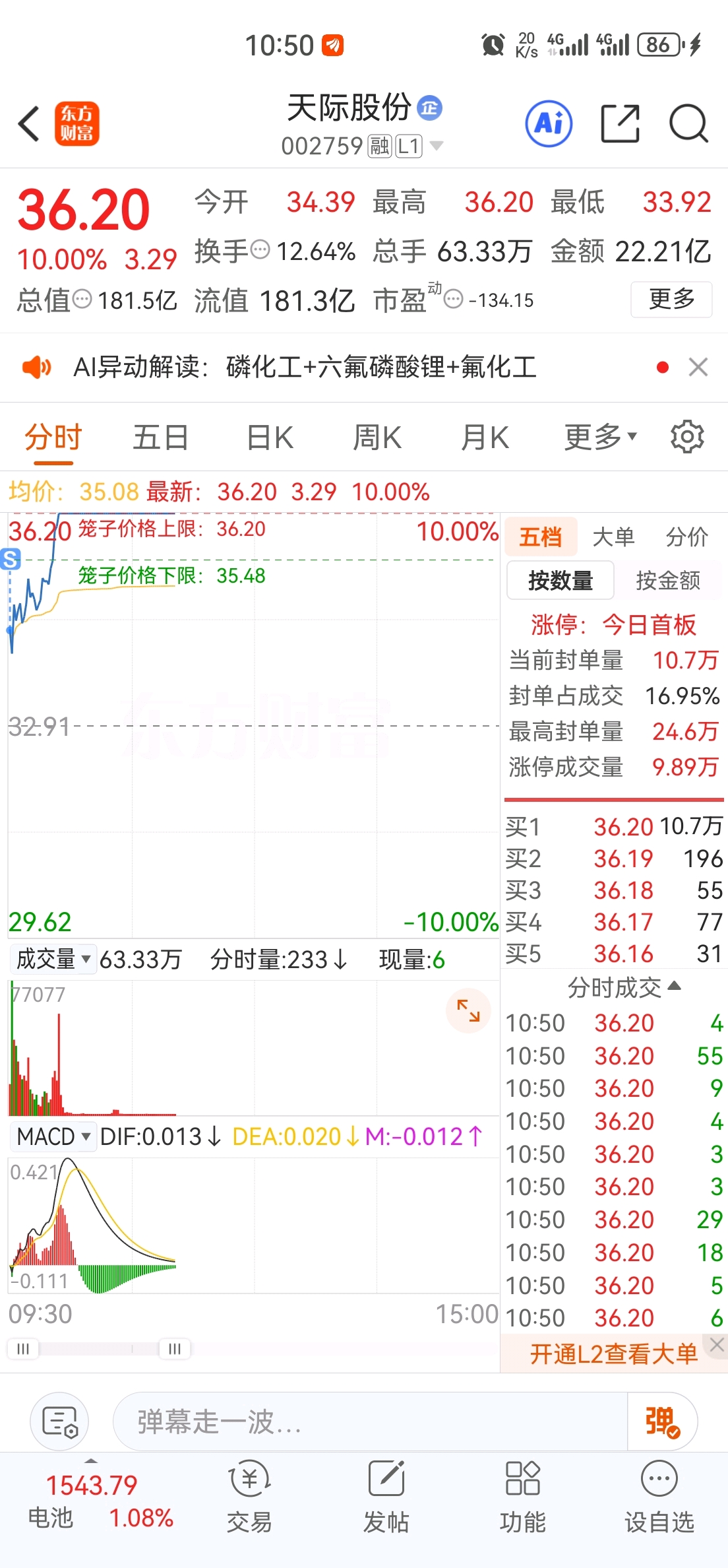 $天际股份(SZ002759)$ 格局小了,老是怕高开砸盘,竞价就跑了,还想下来接,没给机会