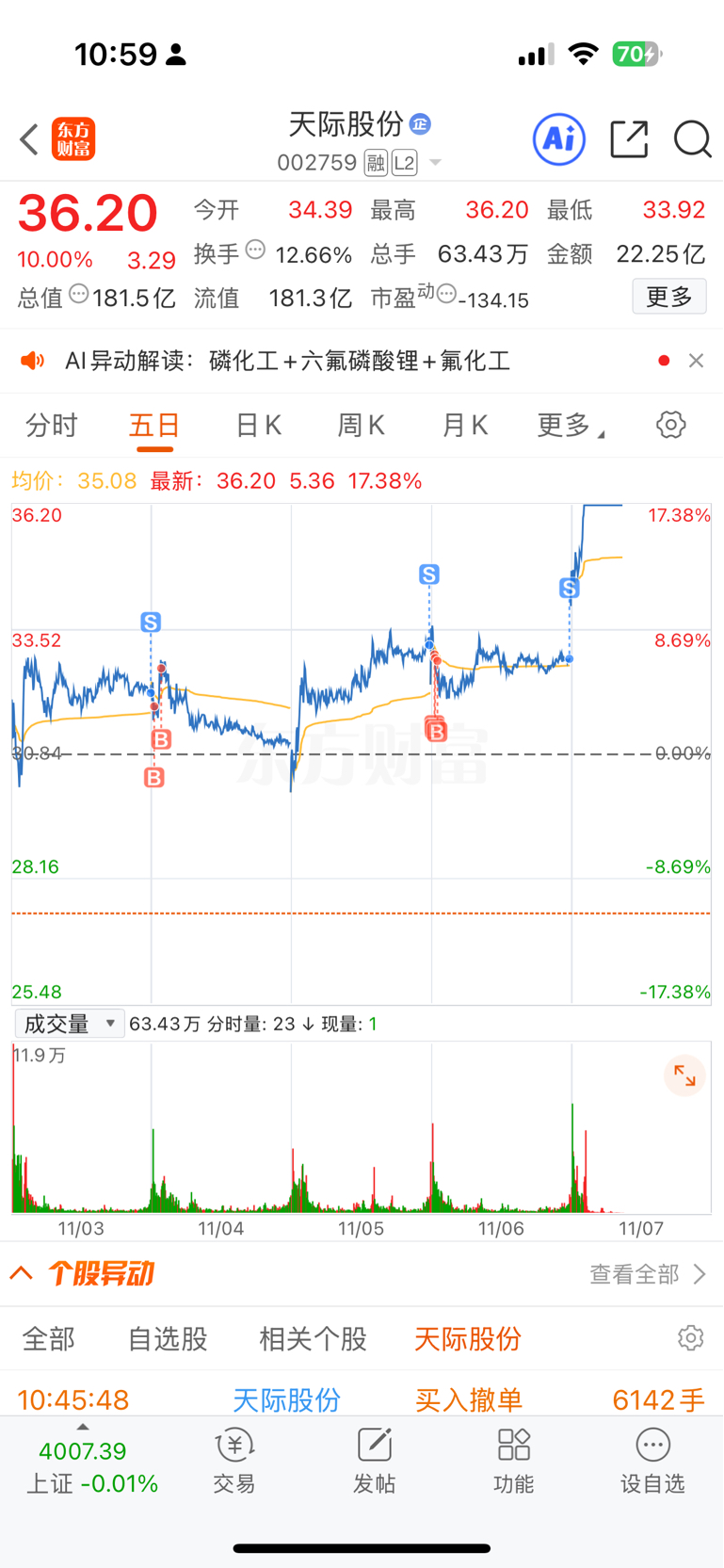 $天际股份(SZ002759)$ 脸打肿!昨天尾盘减大仓位!说明天际太强了!强的可怕