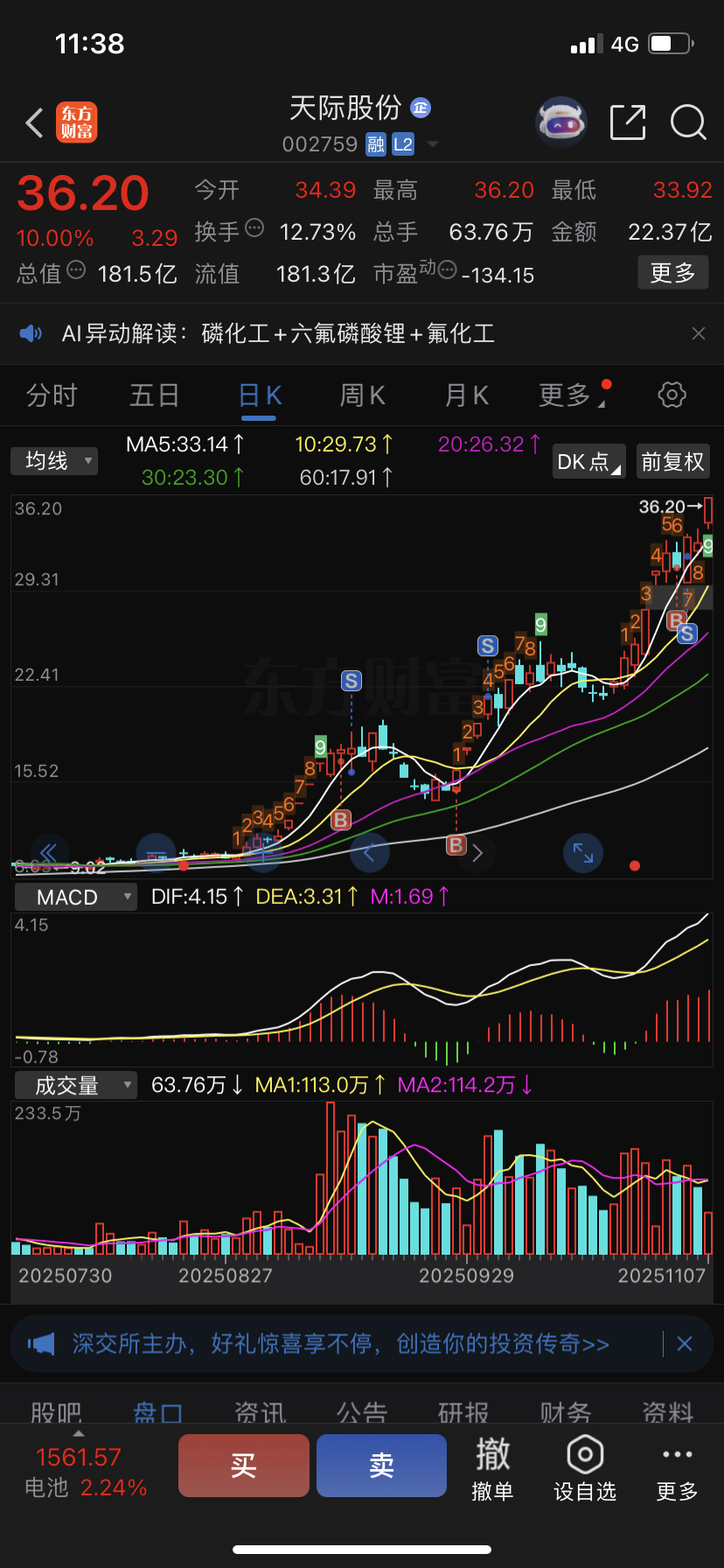 $天际股份(SZ002759)$ 这股强的可怕啊