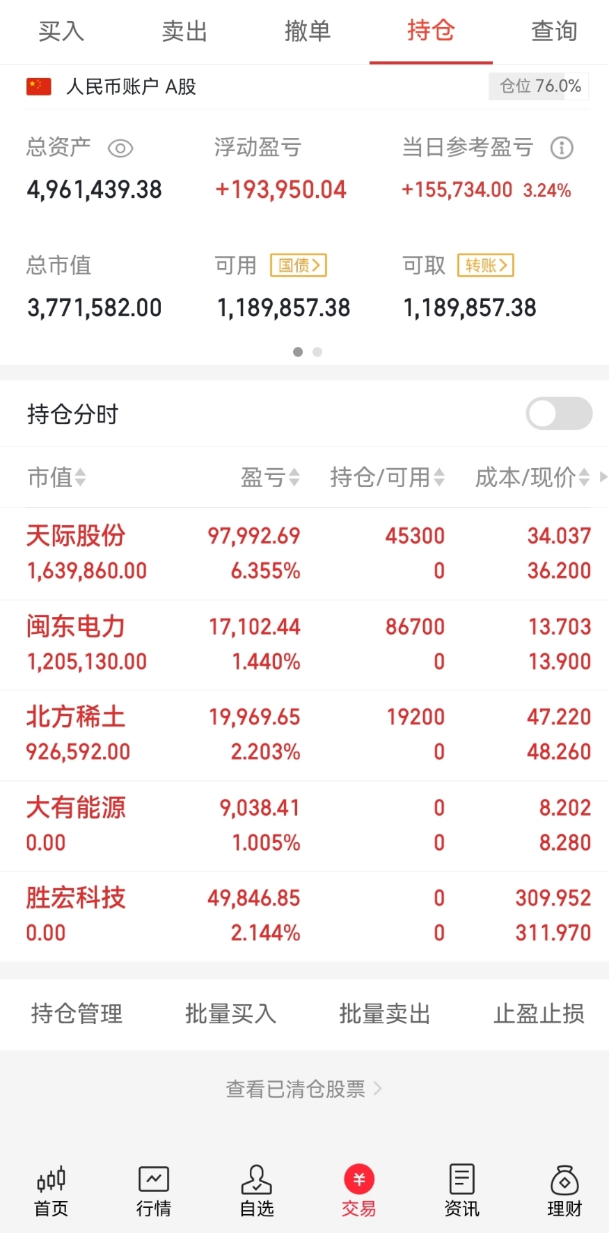 仓位$天际股份(SZ002759)$ ,$北方稀土(SH600111)$