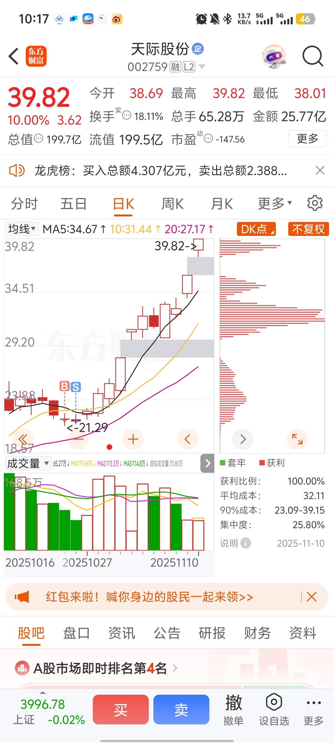 $天际股份(SZ002759)$ $剑桥科技(SH603083)$ 哈哈哈哈不中了