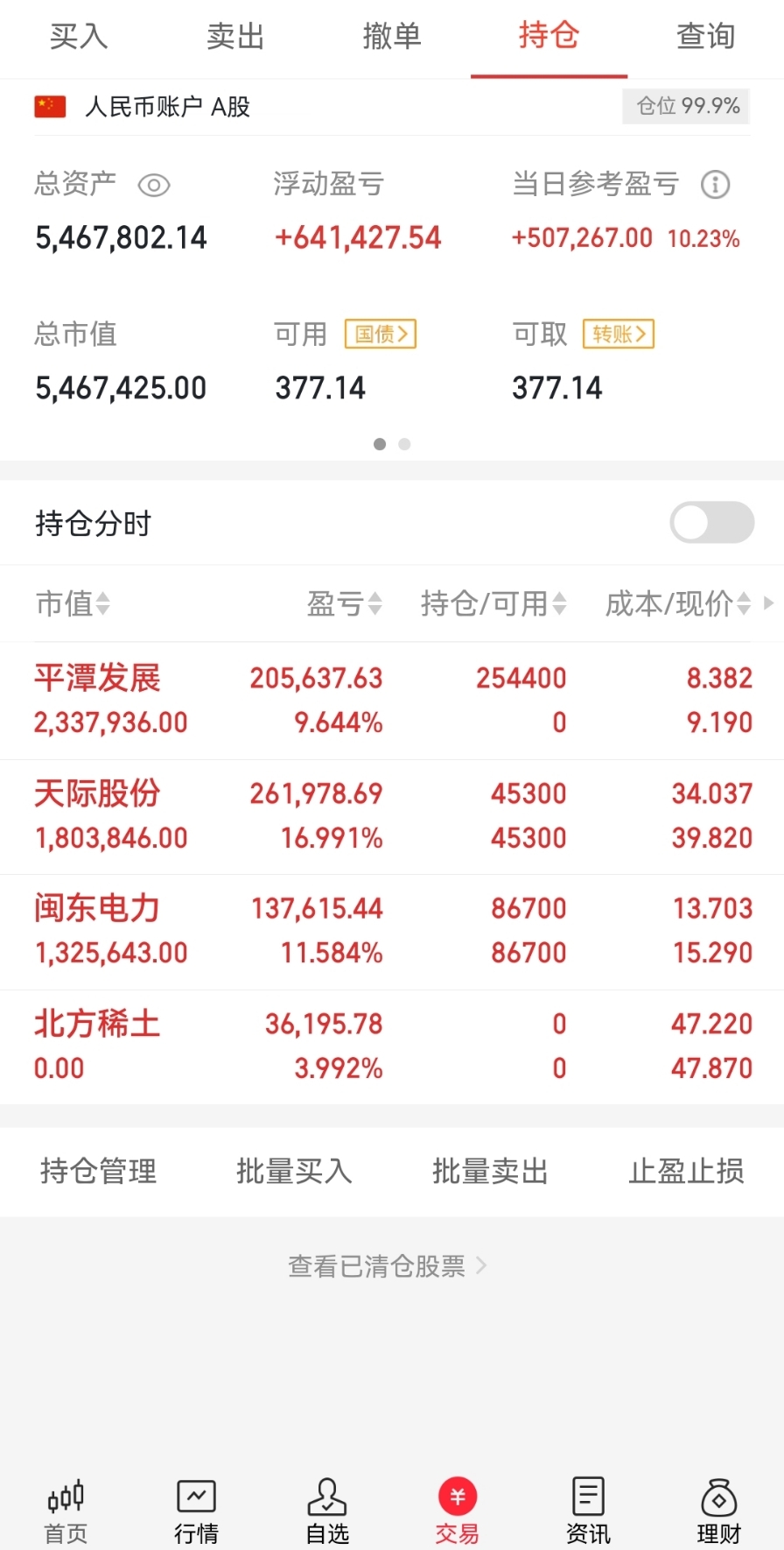 周哥早盘记录仓位,闽东电力星期五跟上吃大肉北方稀土走了开仓的平潭发展相信的牛感谢