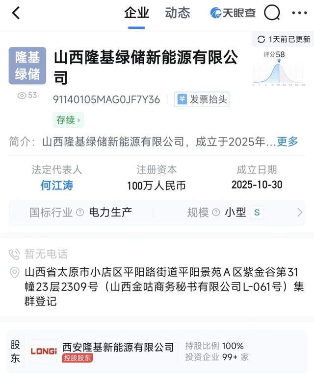 10月30日,山西隆基绿储新能源有限公司正式成立,该公司由千亿光伏巨头隆基绿能间接全资持股,标志着其在山西的能源布局再落关键一子。