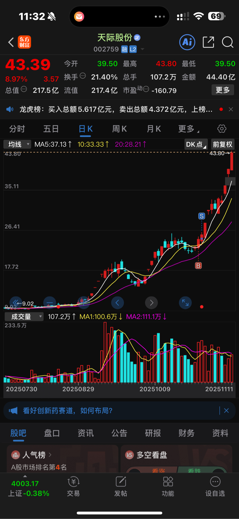 $天际股份(SZ002759)$