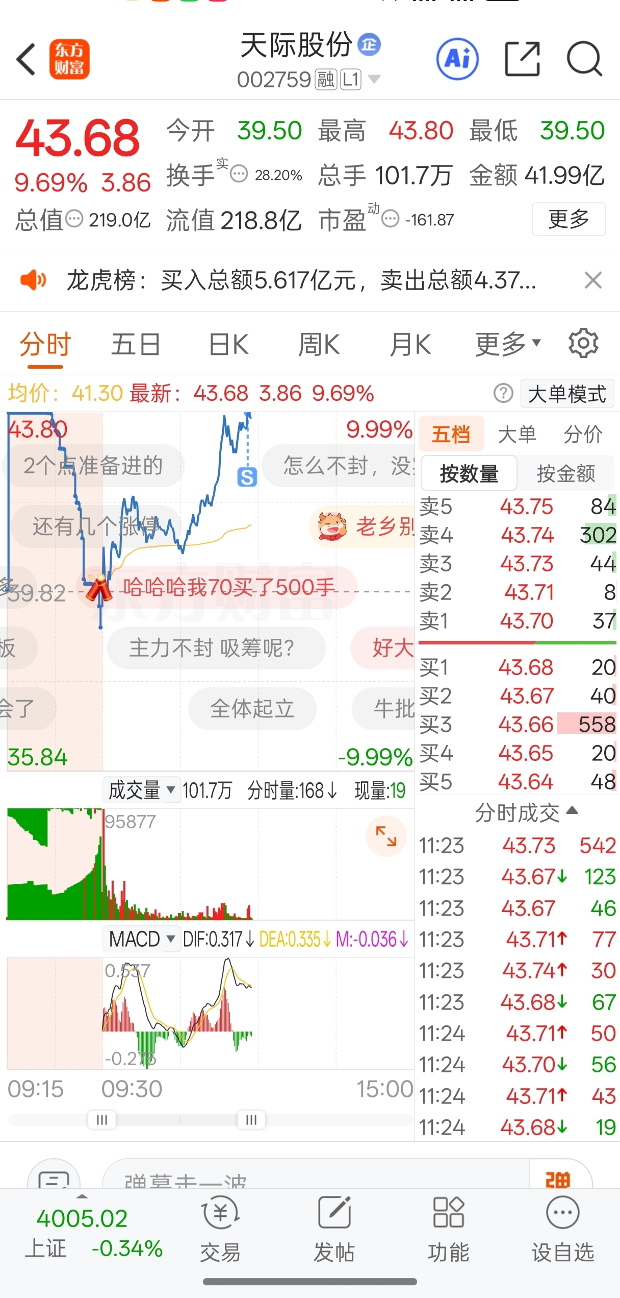 $天际股份(SZ002759)$ 感谢天际主力,牛逼