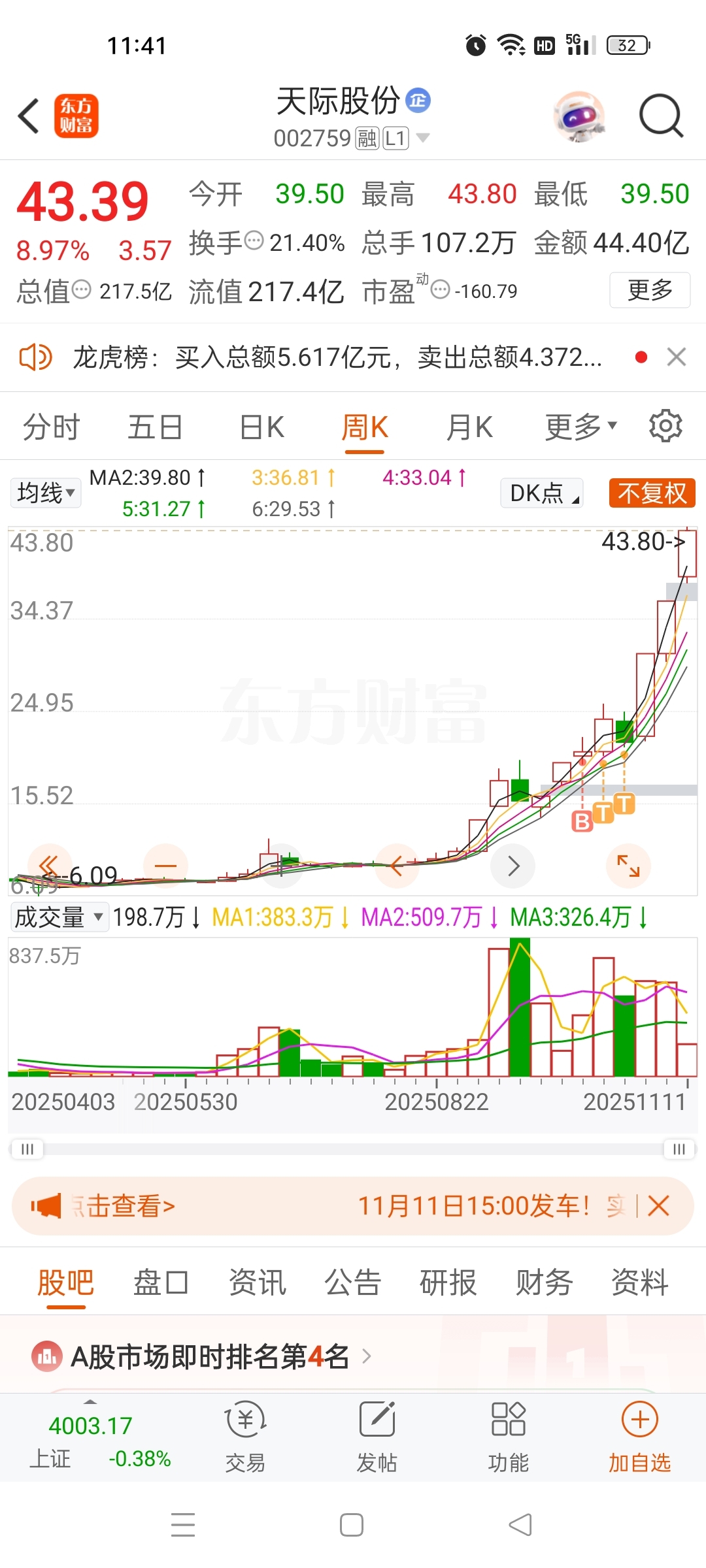 $天际股份(SZ002759)$ 三进三出搞几次没涨,卖出不看了天天涨