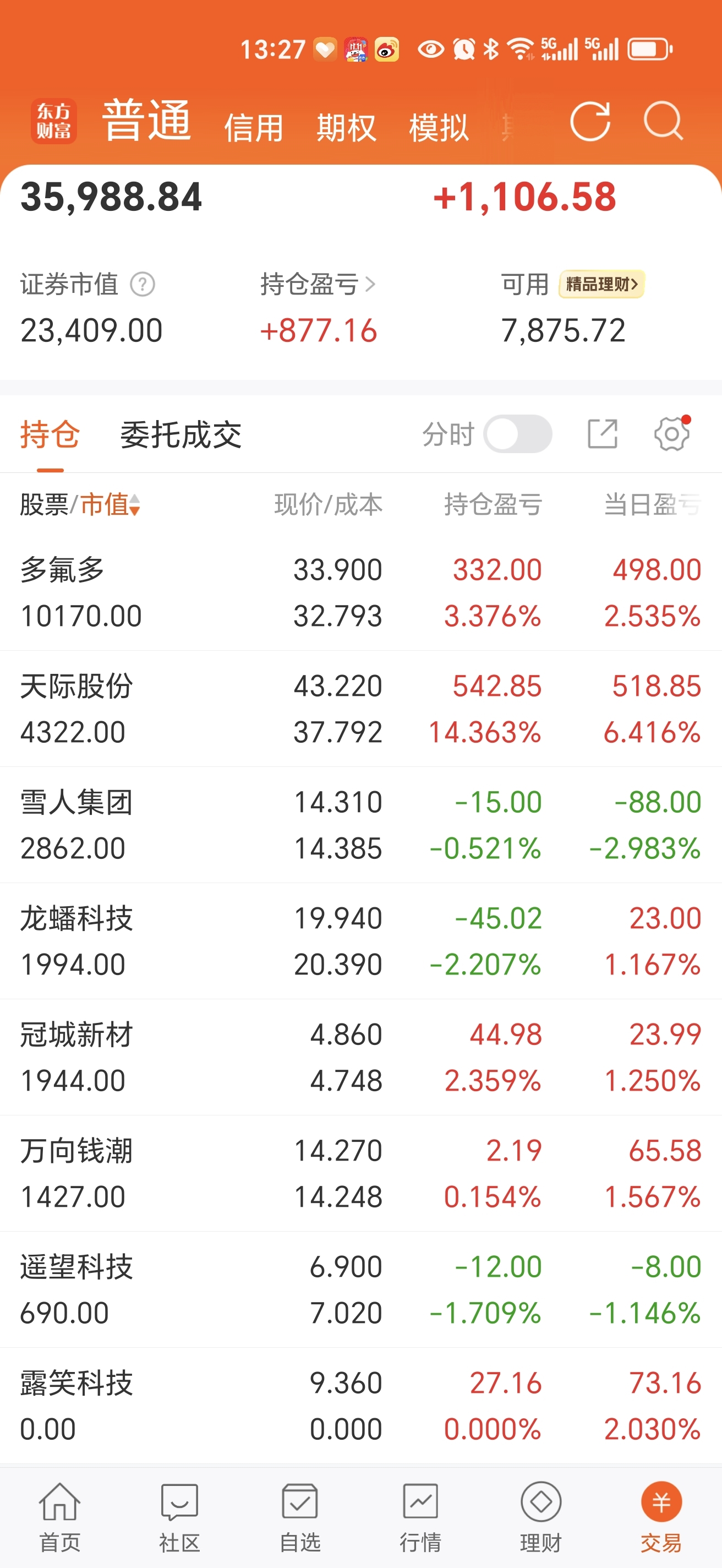 要学会逆市中吃肉#炒股日记# 选择大于努力$天际股份(SZ002759)$ $多氟多(SZ002407)$
