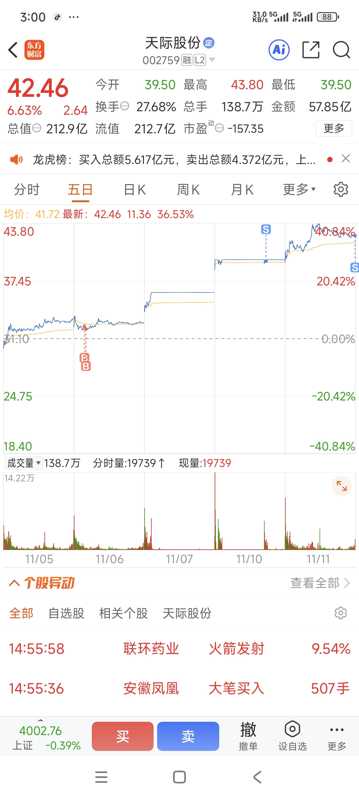 $天际股份(SZ002759)$ 格局到尾盘出了,留下的家人发财