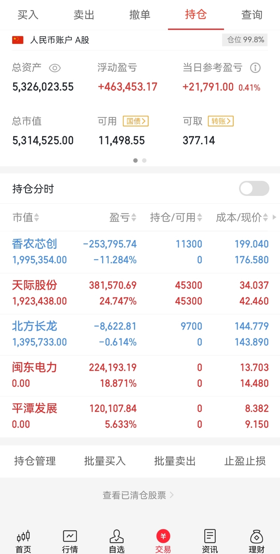 仓位$天际股份(SZ002759)$ $香农芯创(SZ300475)$ $北方长龙(SZ301357)$