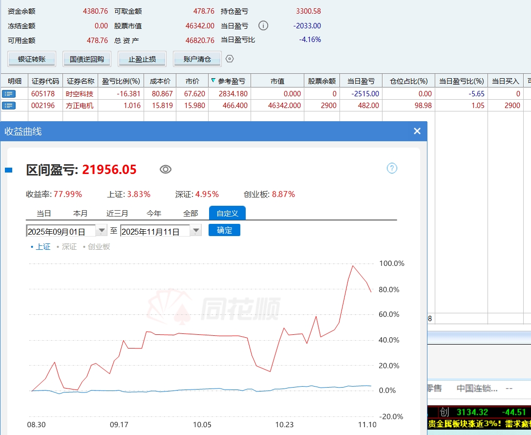 四年万倍,4万到1亿,亿万富翁实盘第10天盘中持仓,605178和000572都没有达到我预期走势,全部清了换002196,股票不及预期走不出来自己预期的结果,不要幻想,马上换股,一定要去弱逐强。因为对605178期待太高,所以走弱了没有第一时间出来,今天拉不起来只能认输出局,算是深刻的教训。所有的账户同步操作,一个账户翻倍,所有的账户跟着翻倍,没有区别。