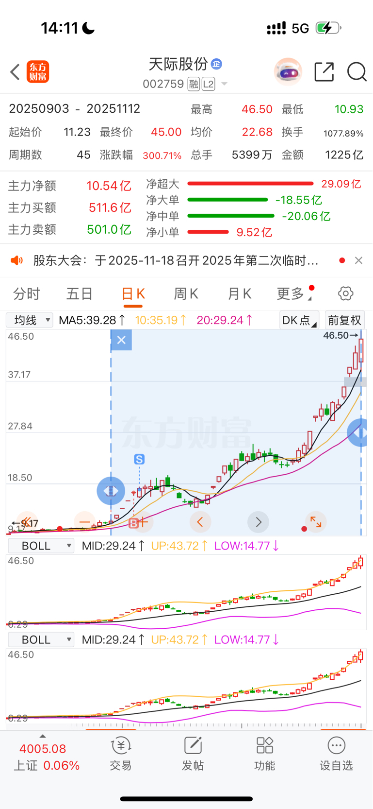 $天际股份(SZ002759)$ 错过3倍,难受。本来八位数了