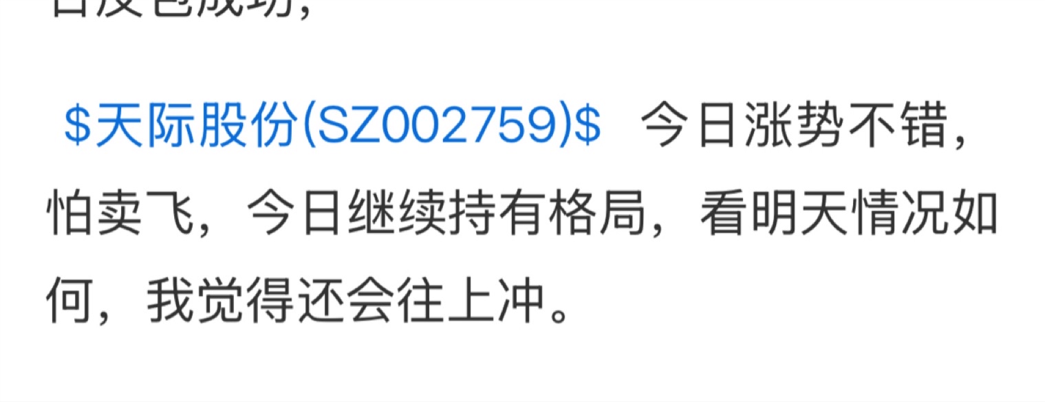 昨天复盘说过天际股份还有上升空间,一姐这次预判正常吧,格局的朋友吃大肉了,出来点