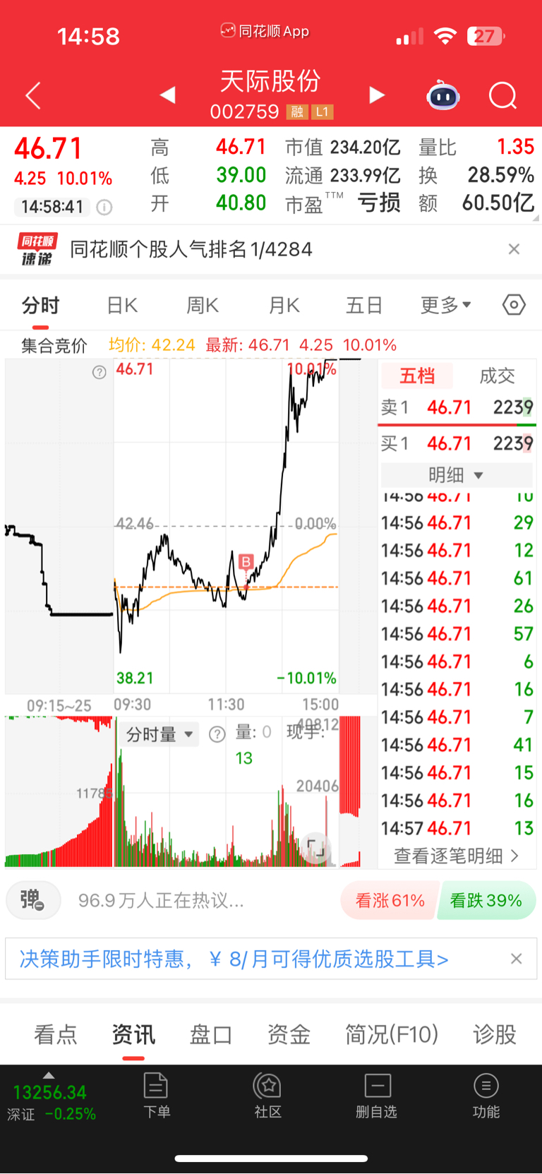 $天际股份(SZ002759)$ 我这算抄到底了吗?睡个午觉的功夫消停了?我什么时候有了这运啊?把我打懵逼了