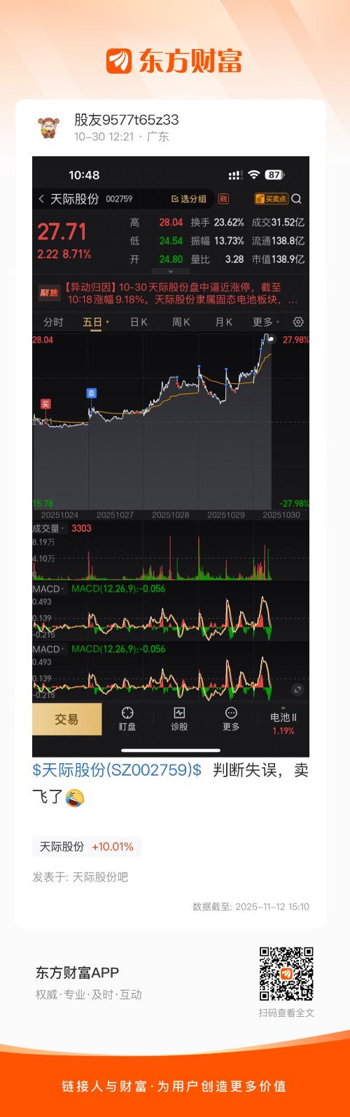 $天际股份(SZ002759)$  判断失误,卖飞了