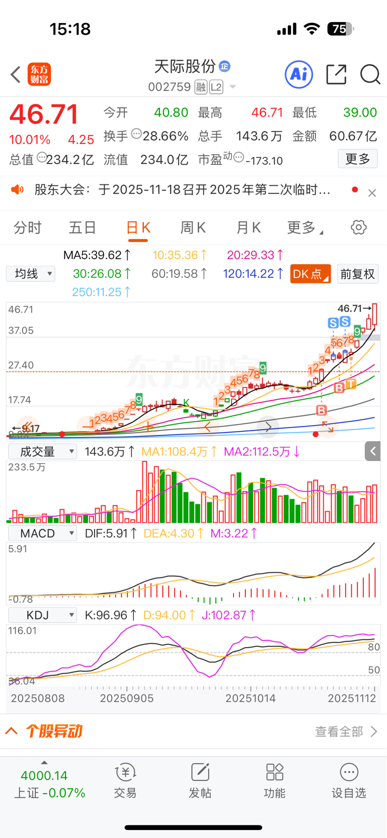 $天际股份(SZ002759)$ 不破新高54不加仓也不减仓!一个字就是冲