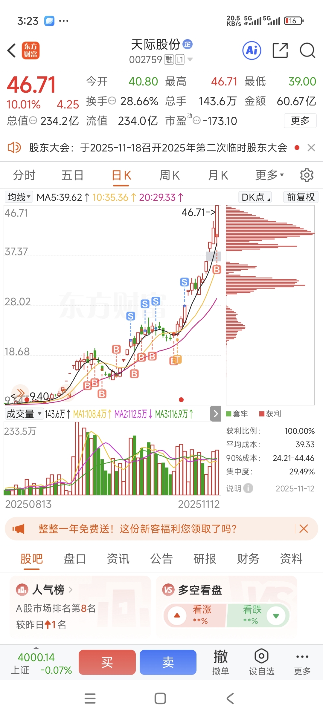 $天际股份(SZ002759)$ 又上车了,天际天际涨到天际