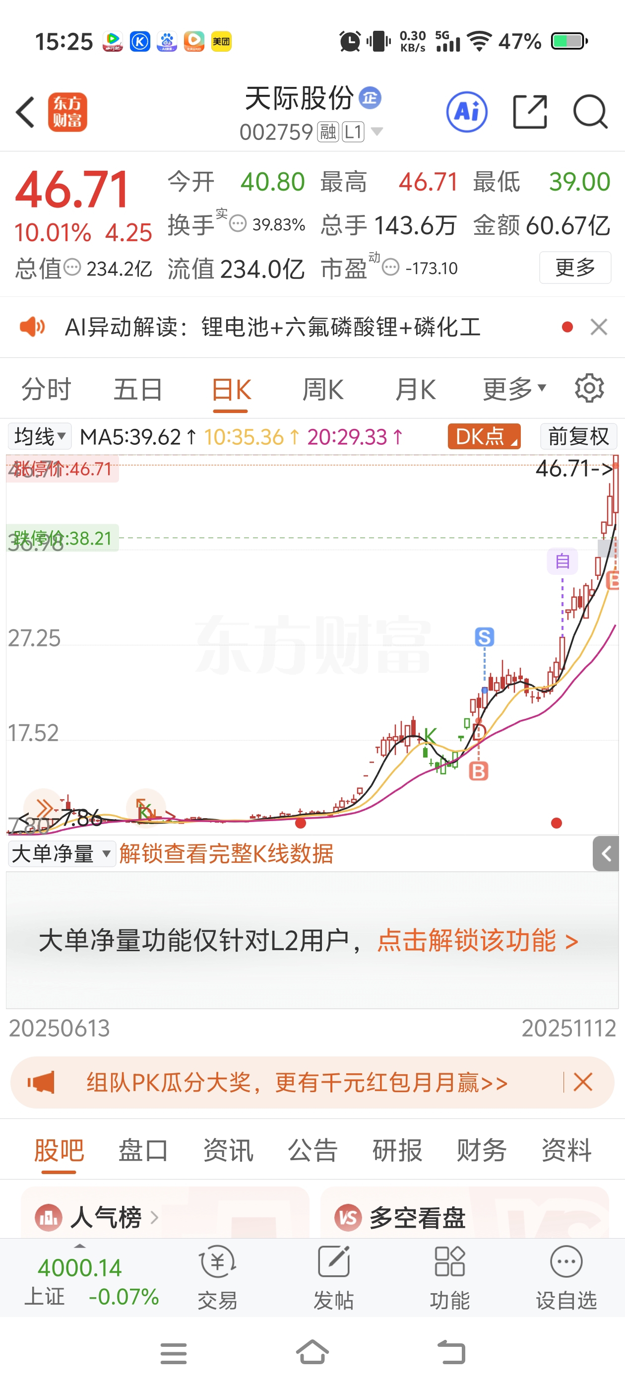 $天际股份(SZ002759)$ 今天我老公回来我决定了要把他掐死,我18块多的本,一个涨停他让我卖了