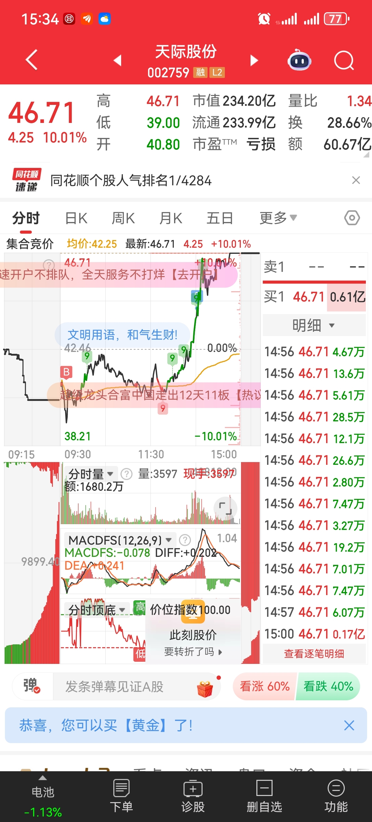 昨天告诉家人们今天是低吸机会,自己却在4个多点T飞。
