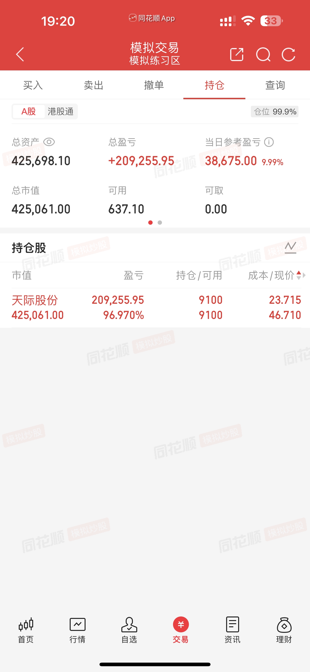 $天际股份(SZ002759)$ 还是模拟盘操作敢长拿