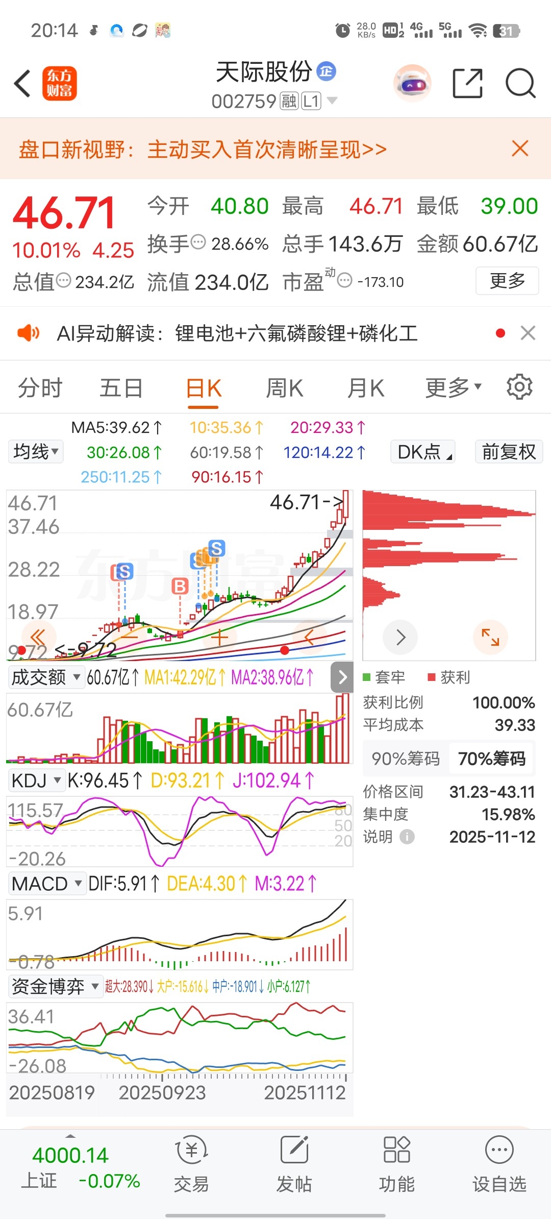 $天际股份(SZ002759)$ 十五买的二十多卖了,唉
