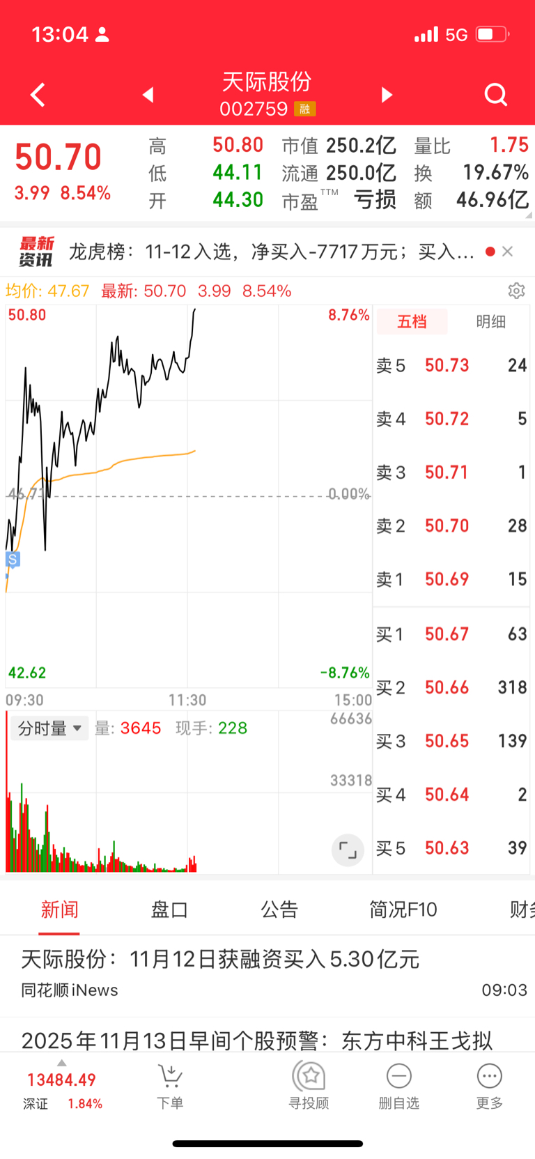 $天际股份(SZ002759)$ 卖在了今日最低点,都还没看清楚都扯来卖了