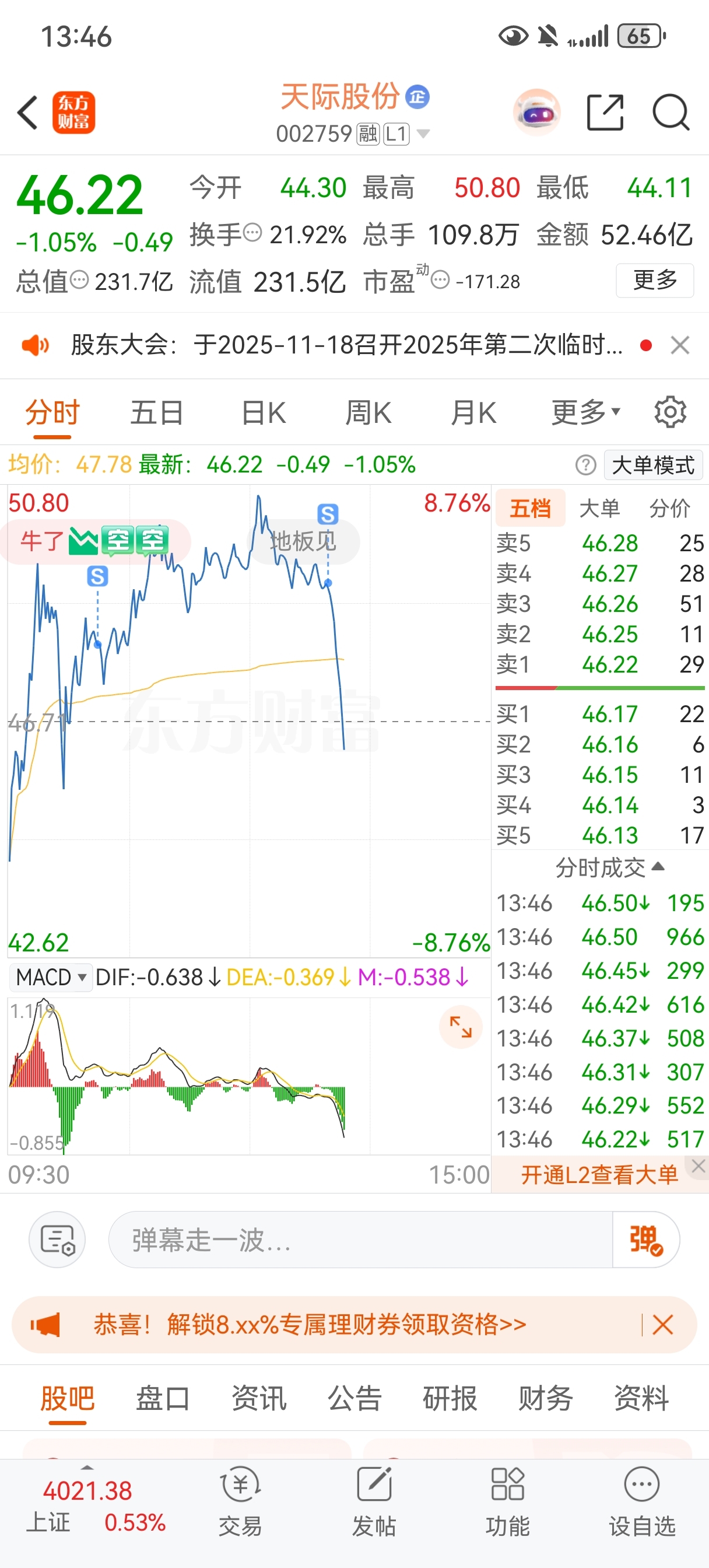 $天际股份(SZ002759)$ 今天真的狗运好,哎,今天去拜一拜