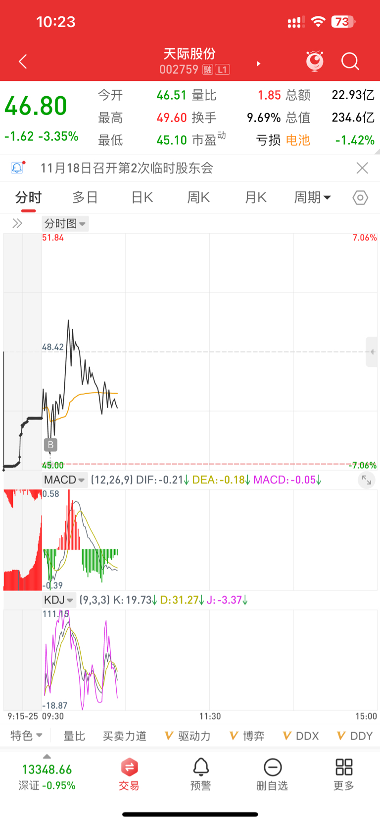 $天际股份(SZ002759)$ 错,要认!挨打,要立正!看来天际要让散户朋友们失望了!今天进的大概率要被埋了!六氟磷酸锂今天还没更新价格!今天大概率绿盘,再加上周六周日变数叠加,下周一开始跌跌模式!个人看法,不构成投资建议!投资需谨慎!